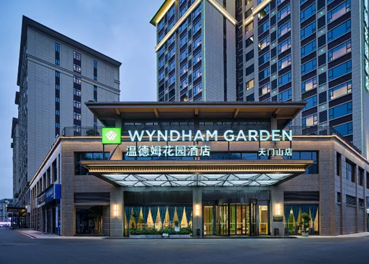 **Wyndham Garden Zhangjiajie Tianmen Mountain (장자제 윈덤 가든 호텔)**은 2024년 문을 연 현대식 호텔로, 티엔먼산 케이블카 역 바로 인근에서 위치하며 접근성이 뛰어납니다 .
