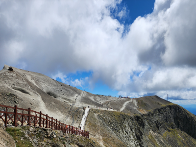 백두산 북파산문→셔틀버스편으로 천문봉 입구→10인승 승합차를 이용하여 천문봉 정상→ 해발 2,670M에서 백두산 천지 감상