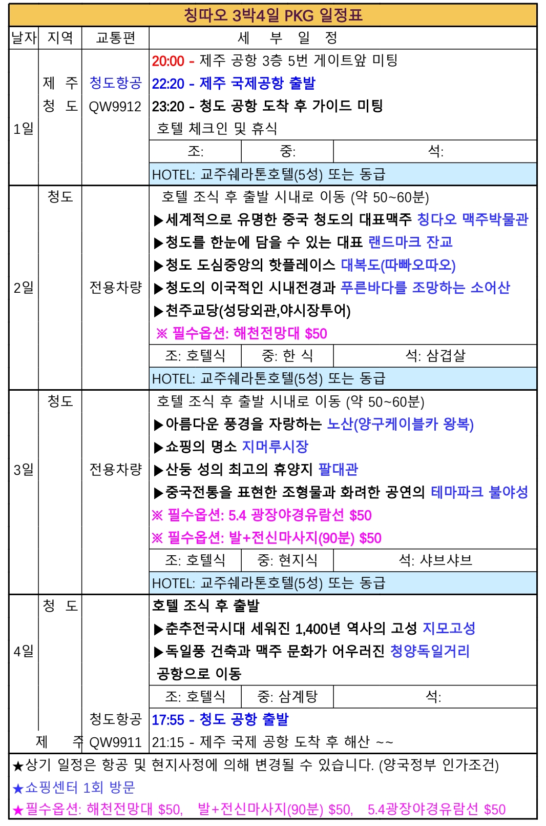 여행 출발일 가격