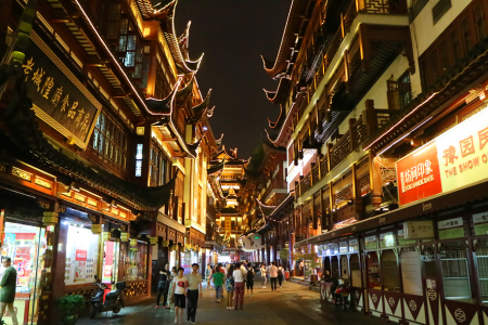 ♦상해옛거리 – 명·청 시대 건축 양식을 그대로 재현한 전통 거리 – 상하이의 오래된 상업 중심지였던 **미아오첸다제(廟前大街)**가 전신 – 붉은 기둥, 검은 기와, 격자창 등 중국 전통 건축 요소가 가득 – 기념품, 차(茶), 전통 간식, 공예품 등을 파는 상점들이 즐비 – 밤에는 조명이 켜져 더욱 고풍스럽고 사진 찍기 좋은 분위기