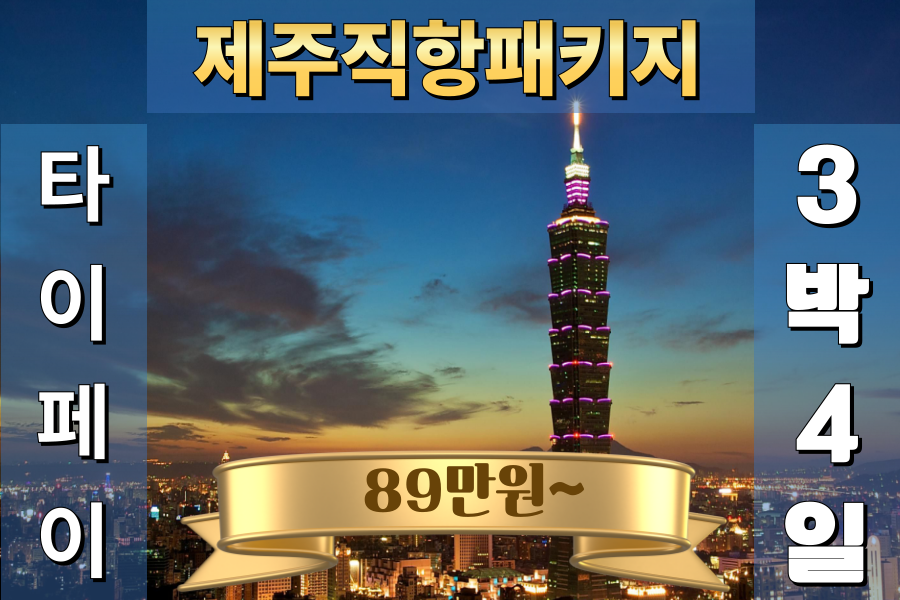 티웨이항공(TW687| TW688) ■ 제주 12:05 타이페이 13:40 2시간 35분 비행 ■ 타이페이 14:25 제주 17:25 2시간 00분 비행 포함사항 √ 왕복항공료, 유류할증료, TAX √ 호텔비, 차량비, 식사비 √ 관광지 입장료 √ 여행자보험(최대한도 1억원) 불포함사항 √ 가이드 봉사료 ($40) √ 싱글룸 사용료 ($135) √ 개인경비 √ 매너팁 선택관광 √ 101전망대 US$ 35/인, 발마사지30분 US$ 30/1인 인솔자 정보 현지가이드 있음 인솔자 없음 출발인원 | 최소 10명부터 출발합니다.