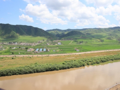 두만강 북한 중국 접경지대에서 북한 남양마을 조망